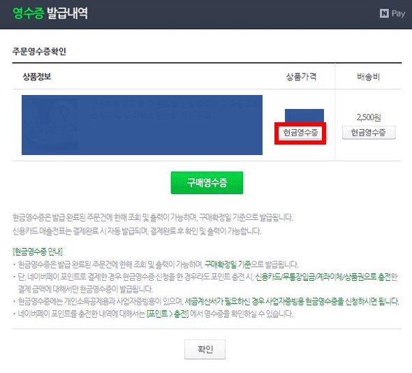 5. 네이버페이의 현금영수증 확인 화면입니다.