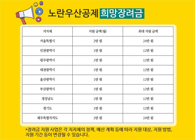 희망장려금은 중소기업중앙회와 협약을 맺은 지자체에서 별도로 실시하는 사업으로,