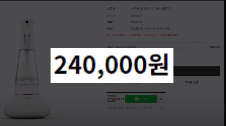 바우젠은 물만으로도 살균수를 만들 수 있다고 광고하는 제품