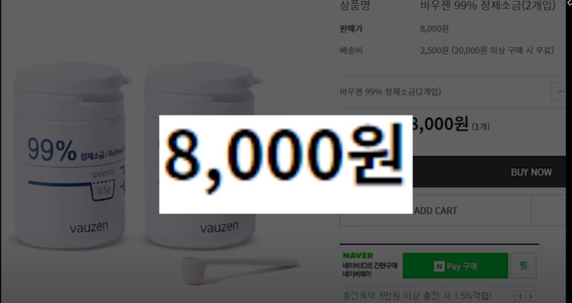 바우젠은 140g 정제 소금을 8,000원에 판매하고 있다.