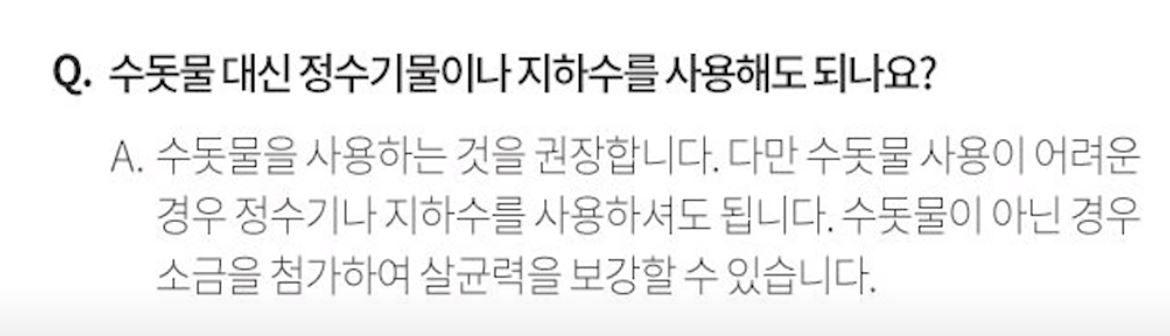 홈페이지에는 정수기 물을 사용해도 된다고 한다.