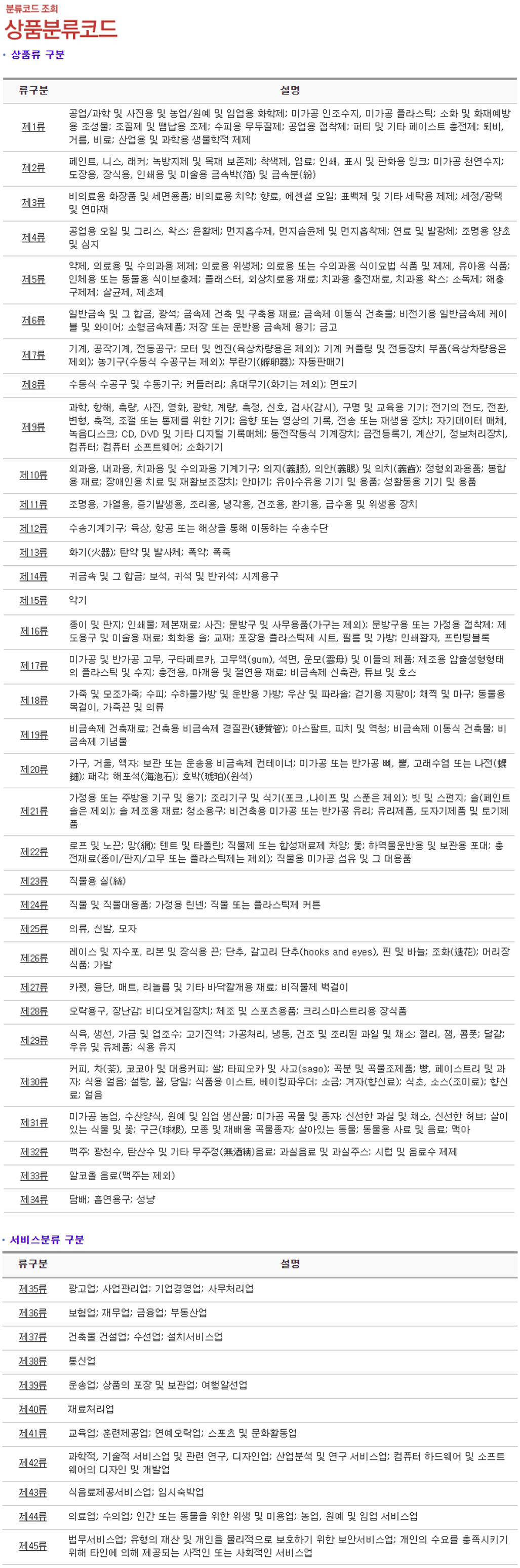 상품분류NICE11판 류구분 보기 | 특허청
