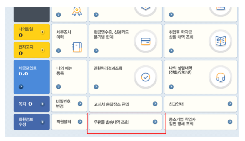 2. 홈택스 로그인> my 홈택스 클릭> 하단 우편물 발송조회 클릭>