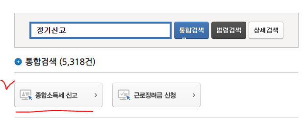 2. 로그인하고 오른쪽에 검색창에 '정기신고' 검색