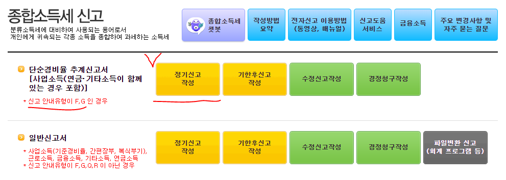 조회하기 클릭> 종합소득세 확정신고 안내 칸에서 보기 클릭