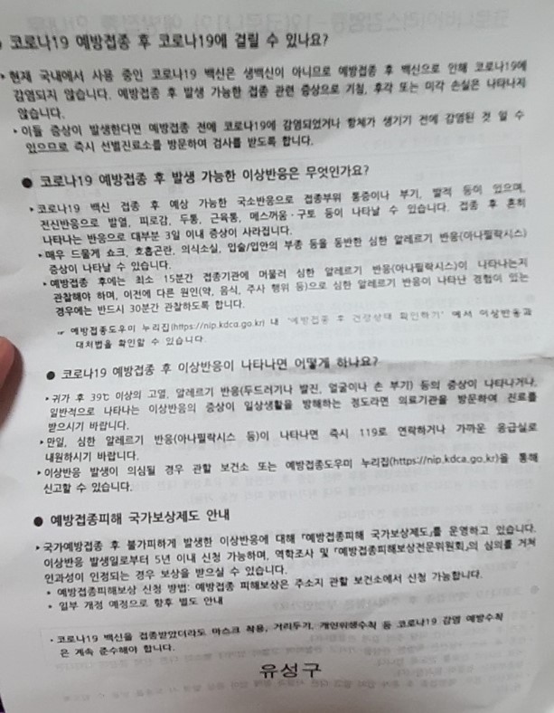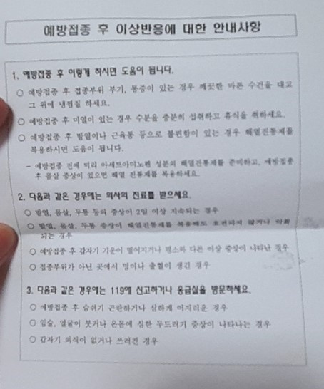 예방접종 하러가시면 아래와 같은 서류를 받습니다.