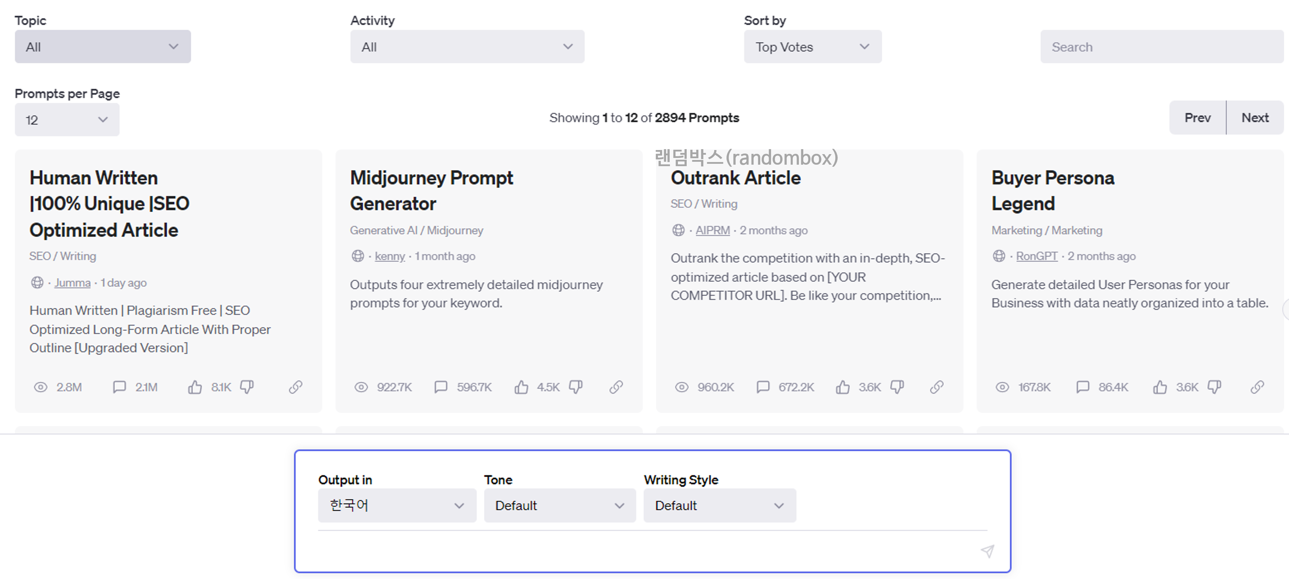 - 검색하여 원하는 프롬포트 양식을 찾는다. ex) 블로그, 유튜브, 인스타 등