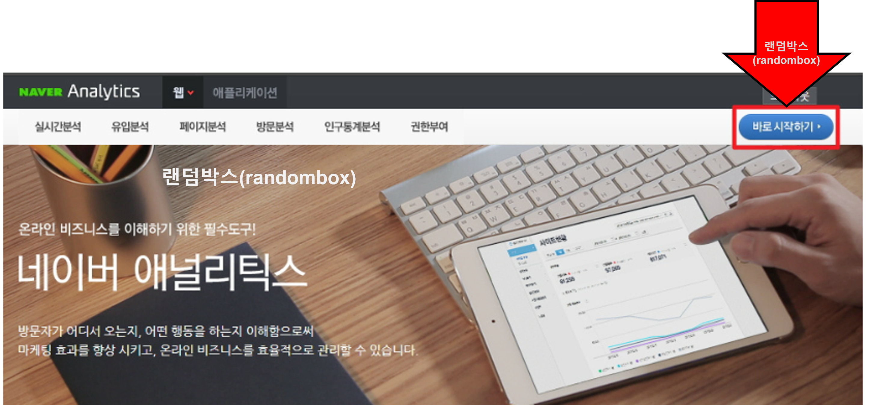 2-1) 네이버 애널리틱스를 처음 사용하는 경우의 화면입니다.