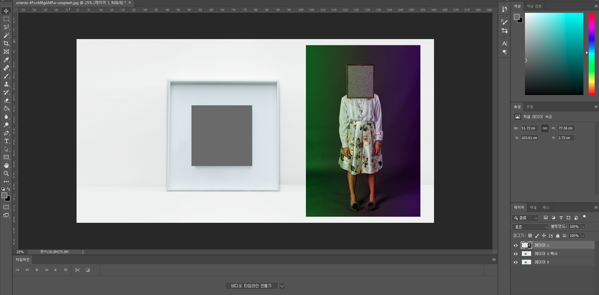 3. 아무 색이나 원하는 색으로 채워줍니다. ctrl+del 또는 alt+del