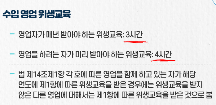 - 위생교육을 받아야 한다.