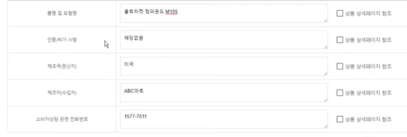 상품 구성옵션. 고시정보, 속성정보도 전부 집어넣어줍니다.